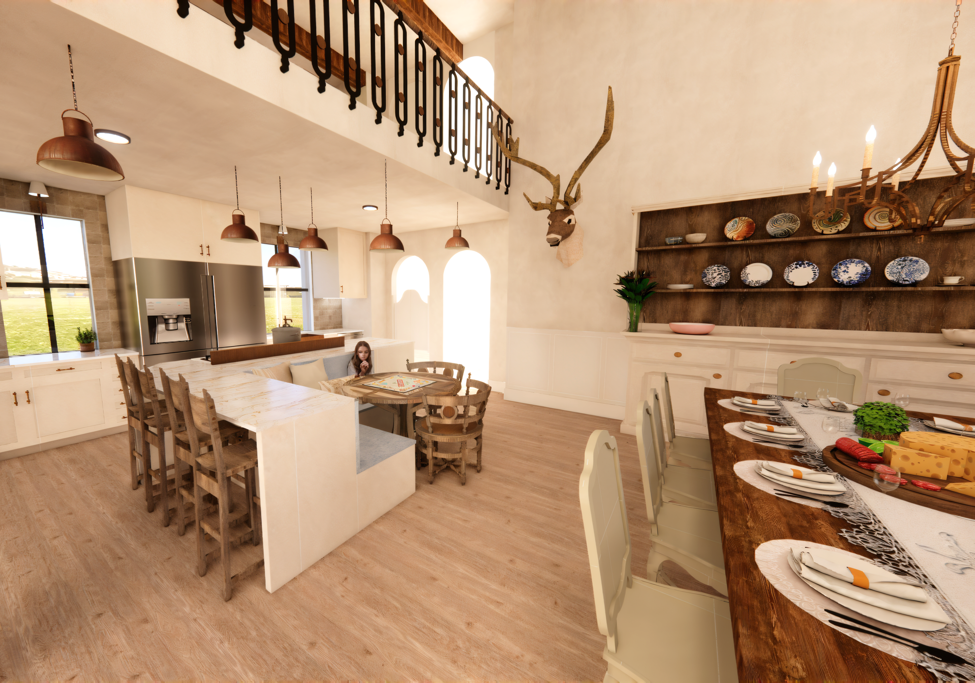 La Maison du Port was designed for a couple in their late sixties who deeply value family time. The open layout encourages connection, while dedicated areas display their cherished taxidermy, china, and